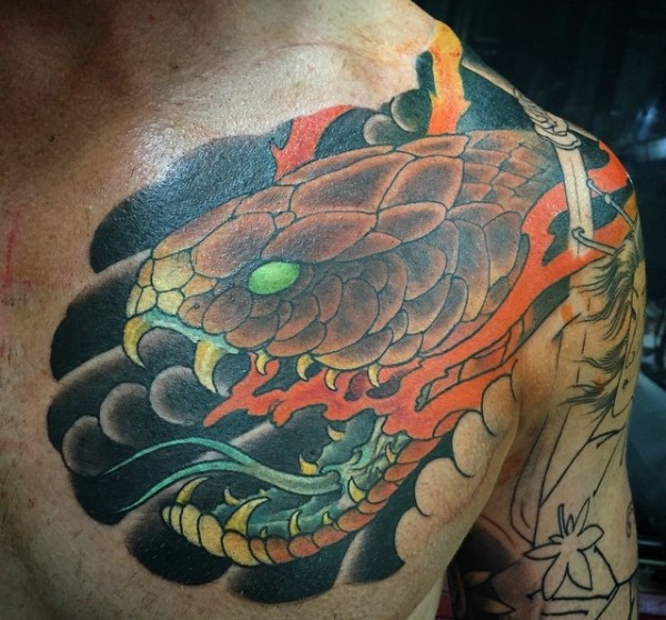 德国恐龙纹身眼镜蛇和卡通鳄鱼纹身水彩动物图案纹身
