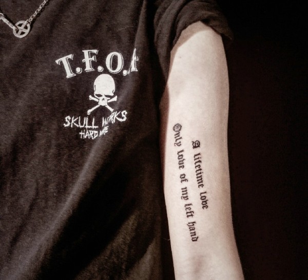 男士手臂内侧小清新英文纹身