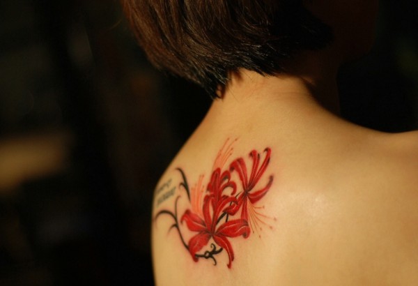 后肩唯美花藤英文图案图片_植物纹身图案大全_纹身图吧