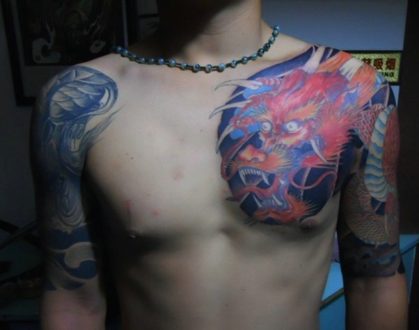 超级完美的彩色邪龙半甲纹身