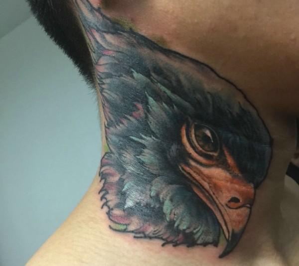 男人脖子彩色燕子刺青图案图片_脖子纹身图案大全_纹身图吧
