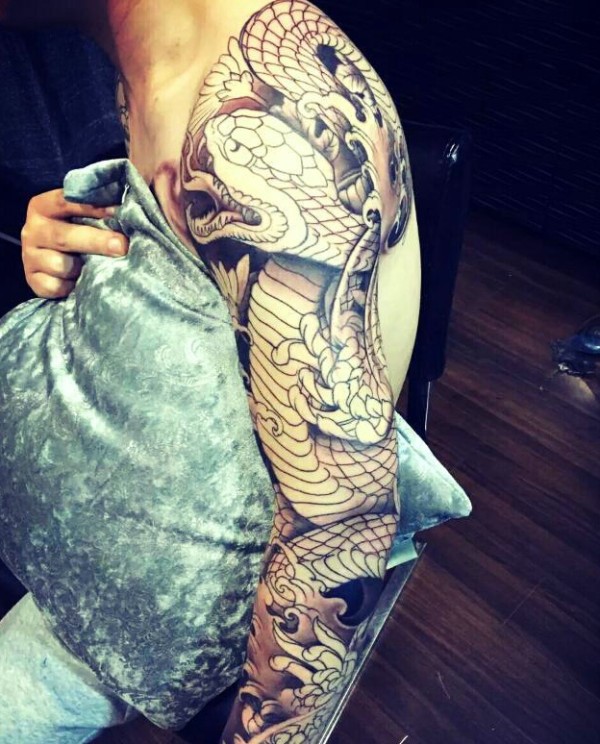 日式手彫刺青作品—半甲龙很感谢客户认可手彫刺青,手彫是日本纹身的手工雕刻技术,时间可以追溯到日本17世纪的江户时代。19世纪,手彫技术被日本黑帮挪用,被用作入会仪式,象征着从此就是江湖中人。在日式传统
