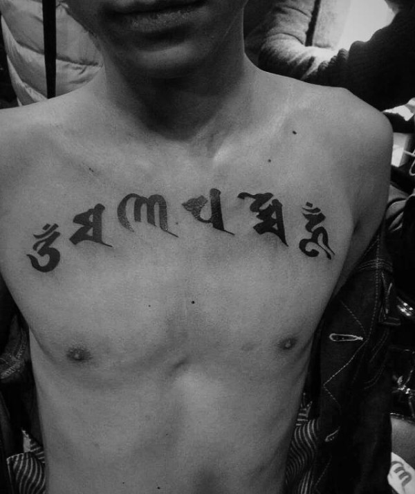 纹身图案胸部男 简洁大方的男生胸部纹身图案