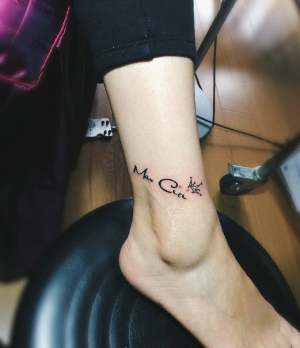 简单小清新英文的腿部纹身图片