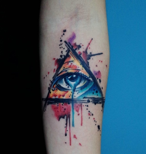 几何眼球的女生手臂纹身图案