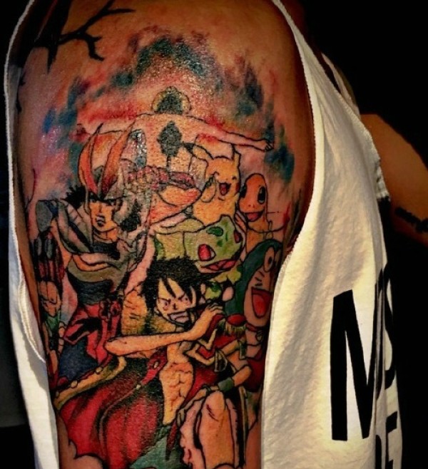 彩色动漫的大臂图腾纹身图案
