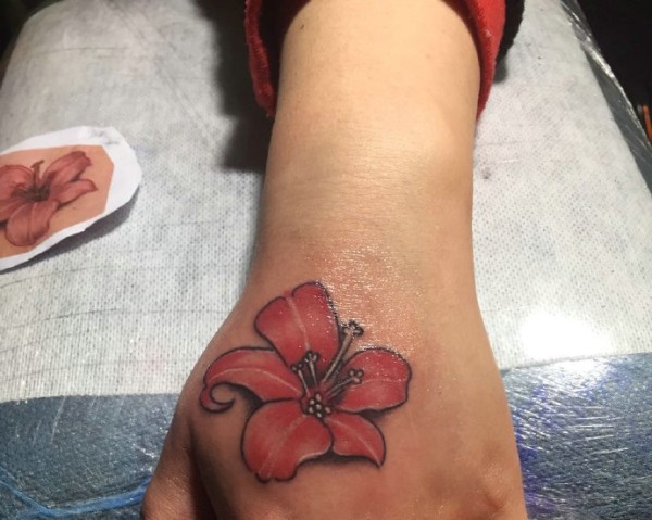 手部个性盛开莲花纹身图片_植物纹身图案大全_纹身图吧