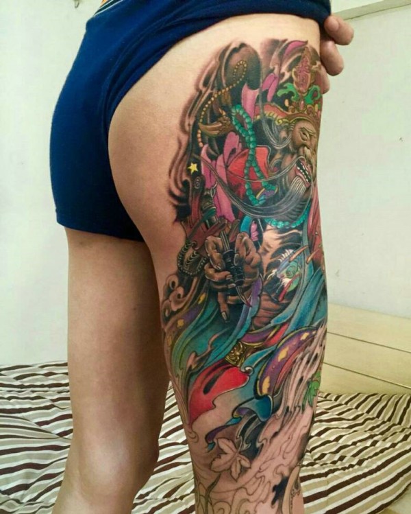 传统花腿纹身--18张传统风格的大花腿纹身图案作品