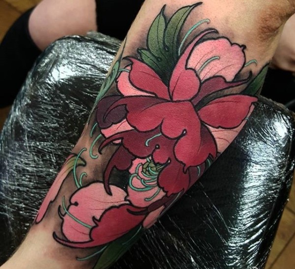 欧美玫瑰纹身 男生手臂上花朵纹身图片