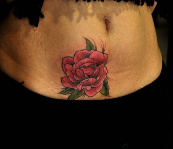 落在女生腹部一朵花朵纹身图片