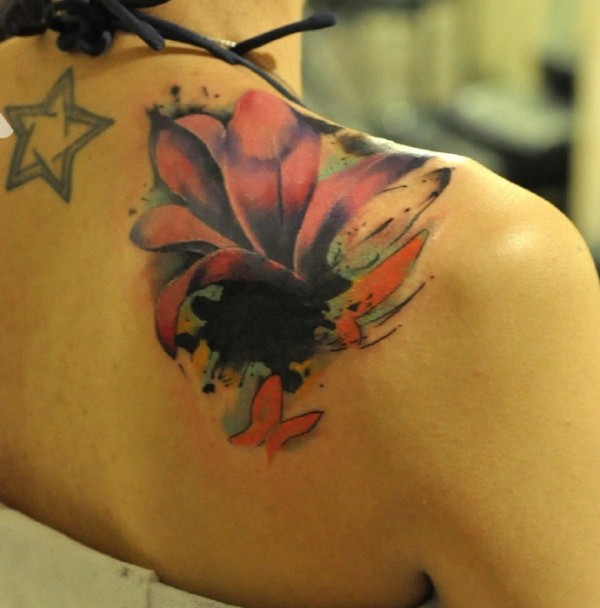 女生肩花纹身_15张女性双肩对称的肩花纹身图案作品图片