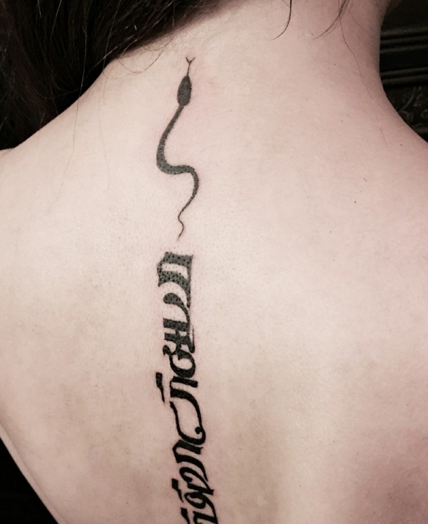 脊椎部梵文纹身图片个性独特