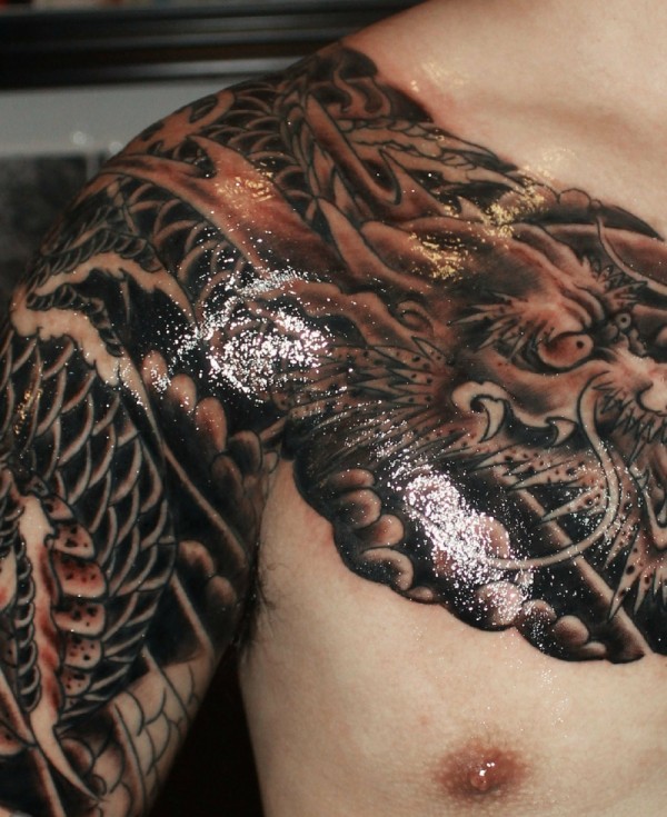 帅气无比的半甲邪龙纹身图案