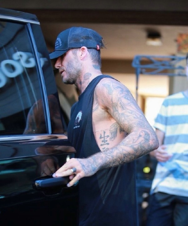 贝克汉姆满身纹身十分抢镜