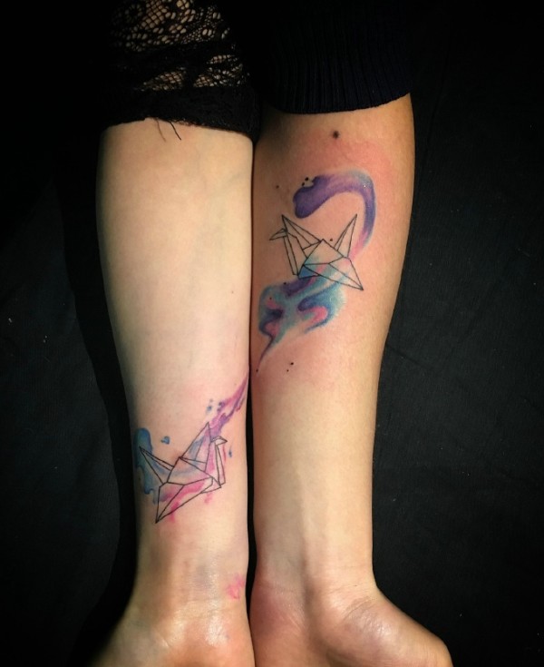 小小千纸鹤手腕情侣纹身图片