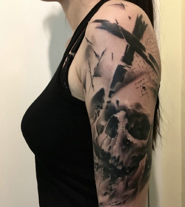 个性手臂悲伤的骷髅纹身图案图案图片_骷髅纹身图案大全_纹身图吧