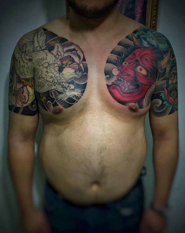 邪龙与般若的半甲纹身图案
