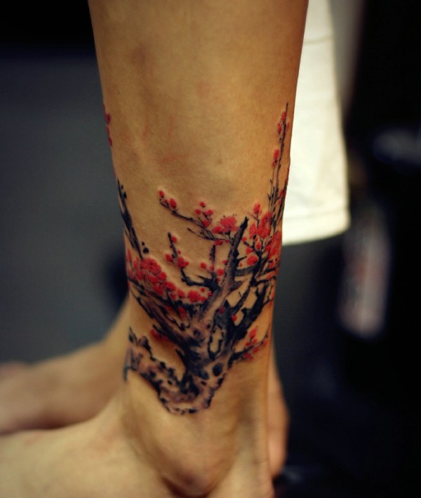 清新花朵腿部纹身图案图片_植物纹身图案大全_纹身图吧
