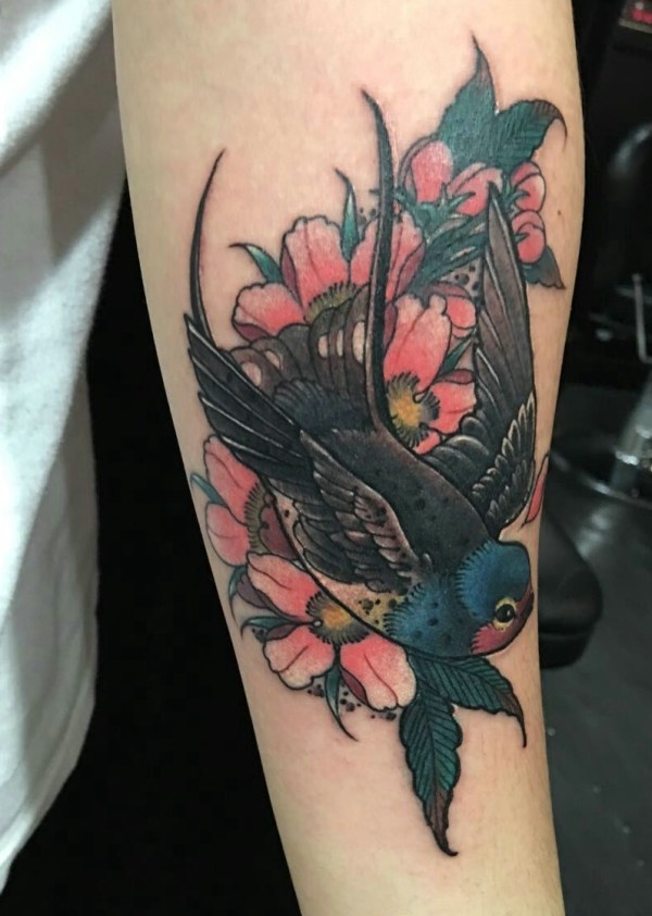 手臂小燕子纹身图片可爱动人