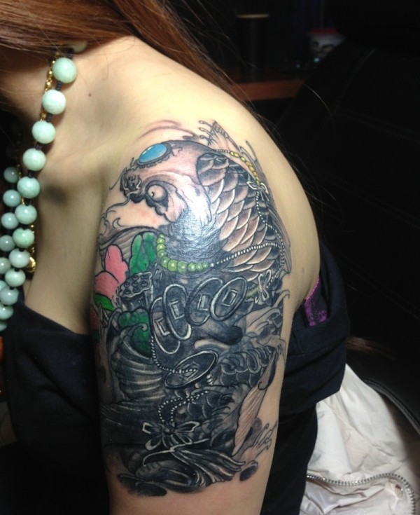 手臂莲花蛇纹身图案_臂部纹身图案大全_纹身图吧