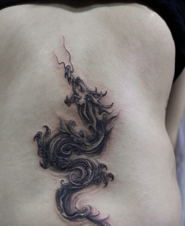 龙纹身手稿_一组老传统黑灰龙手稿纹身图案
