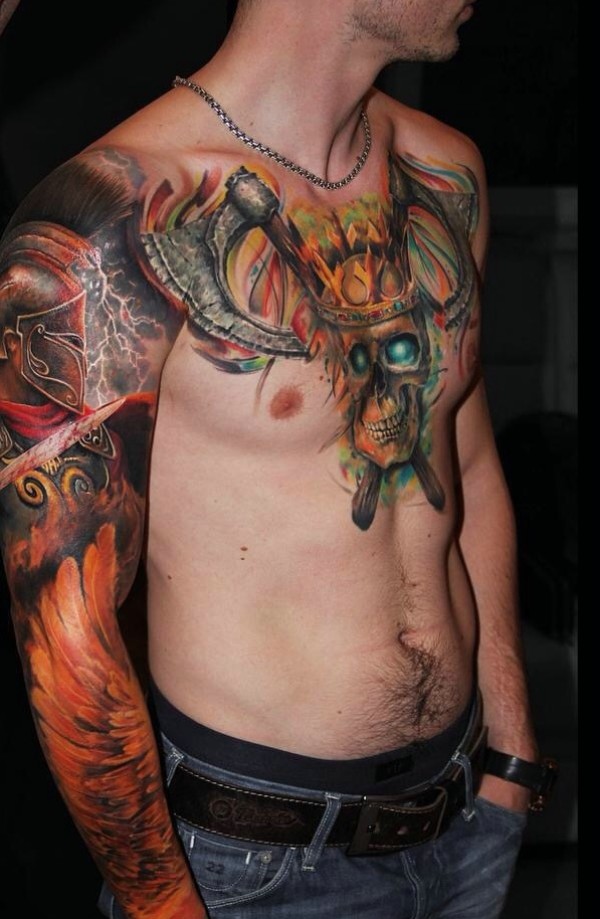 型男彩色半甲纹身图片那么的帅气