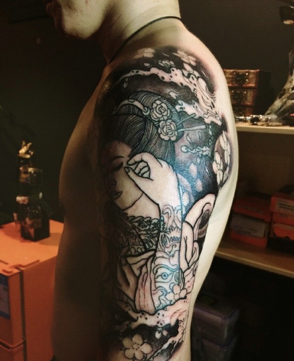 女性人物纹身图案 男生大臂纹身女性人物纹身图案
