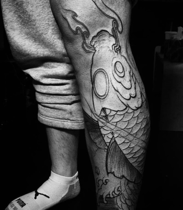 传统鲤鱼花小腿纹身_腿部纹身图案大全_纹身图吧