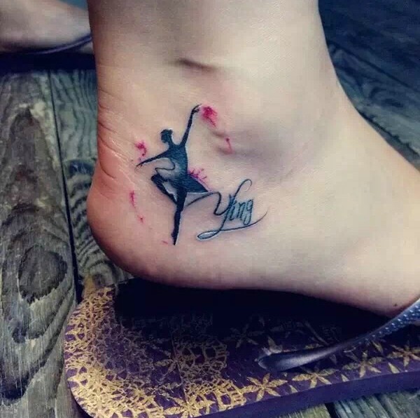 爱跳芭蕾女孩的脚背图腾纹身图片