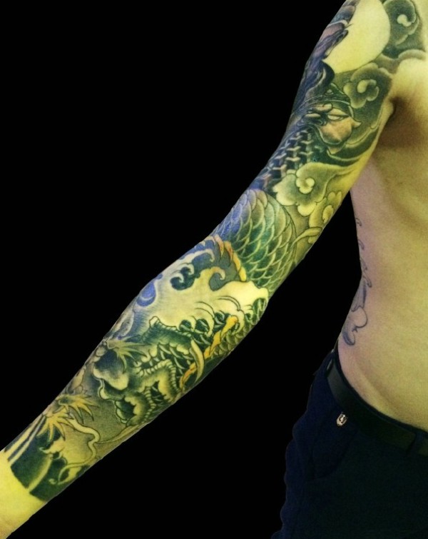 日式手彫刺青作品—半甲龙很感谢客户认可手彫刺青,手彫是日本纹身的手工雕刻技术,时间可以追溯到日本17世纪的江户时代。19世纪,手彫技术被日本黑帮挪用,被用作入会仪式,象征着从此就是江湖中人。在日式传统
