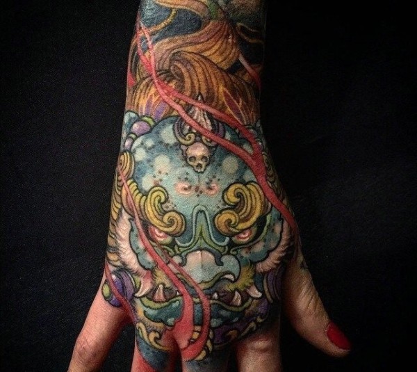一套邪恶的彩色手背图腾纹身图片