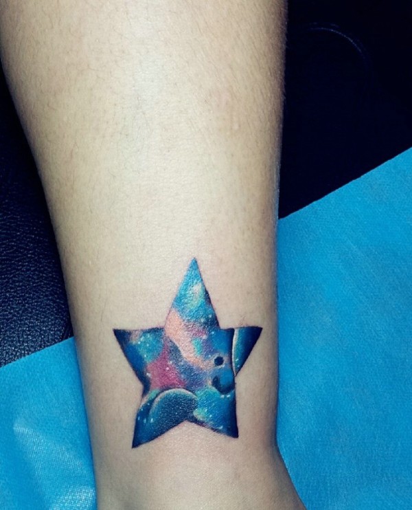 腿部闪闪发亮的五角星纹身图片