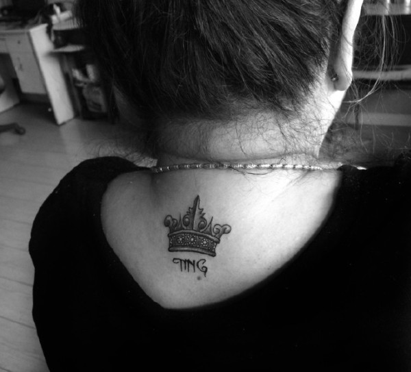 女生脖子的小时尚皇冠纹身图案