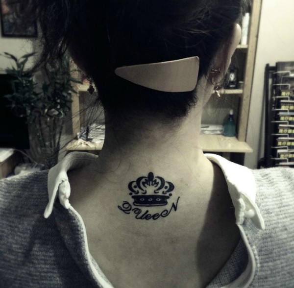 后颈部纹身小图--9张女生脖子后颈处的简约纹身图案