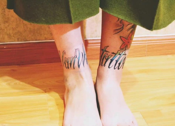 小腿花体英文纹身图片时尚抢眼