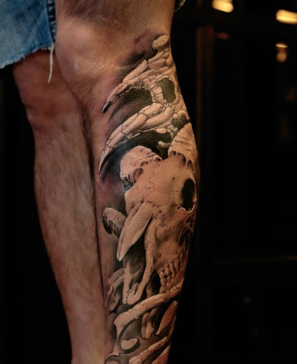 花腿纹身--一组大黑腿纹身图案作品欣赏