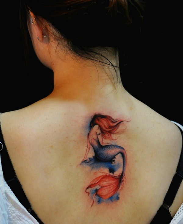 女生背部美人鱼纹身图片很漂亮