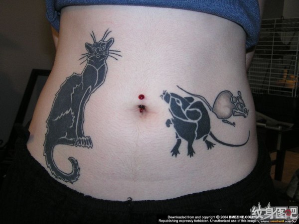 分享一款腰部时尚性感的蝶恋花纹身图案_腰部纹身图案大全_纹身图吧