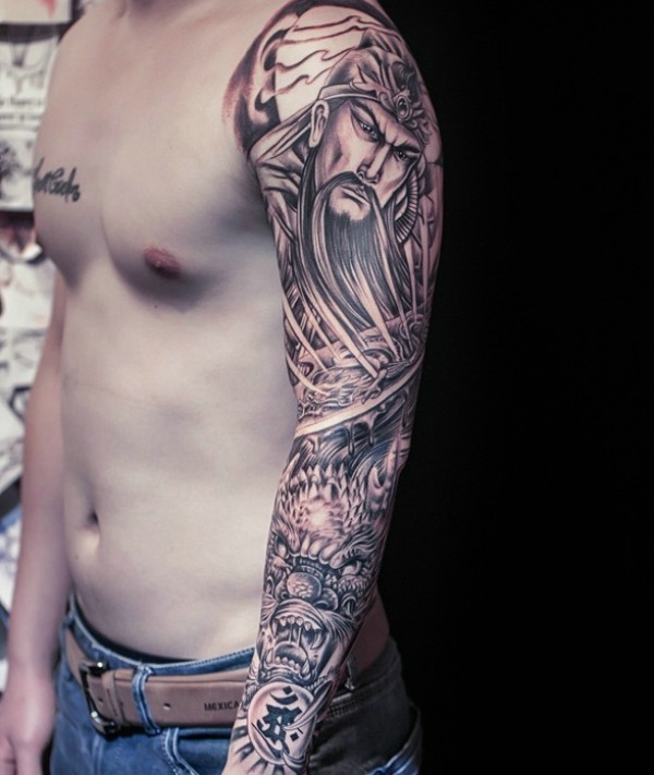 手臂经典关公纹身图片很帅气