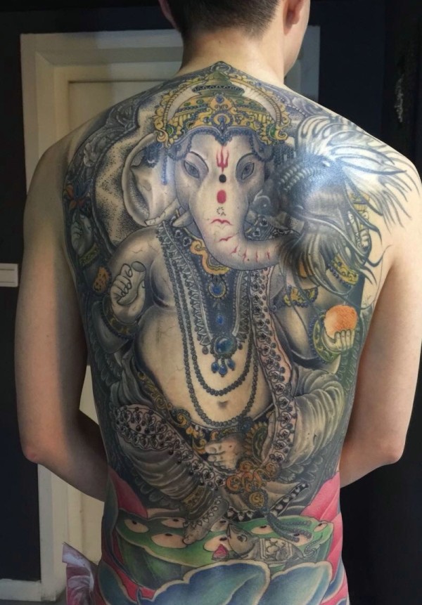 成熟男士满背大象神纹身图案