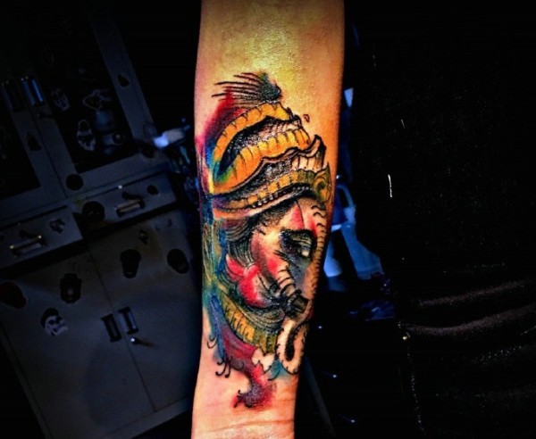 抢眼的彩色象神手臂纹身图片