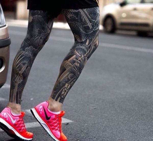 花腿纹身--一组大黑腿纹身图案作品欣赏