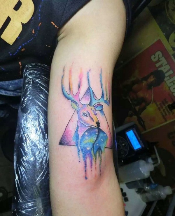 手臂几何水彩羊头纹身图片