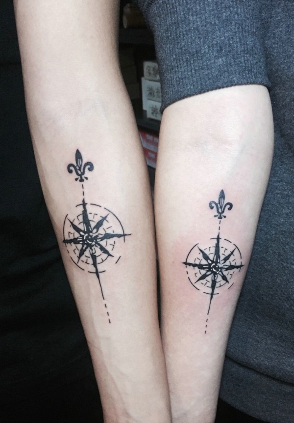 创意指南针手腕情侣纹身图片