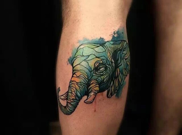 小腿上一款大象纹身图案_腿部纹身图案大全_纹身图吧