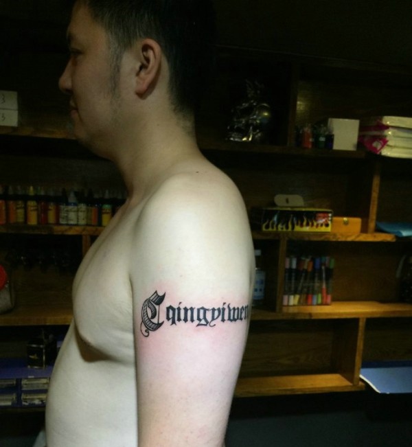 80后男士大臂简单英文纹身图片
