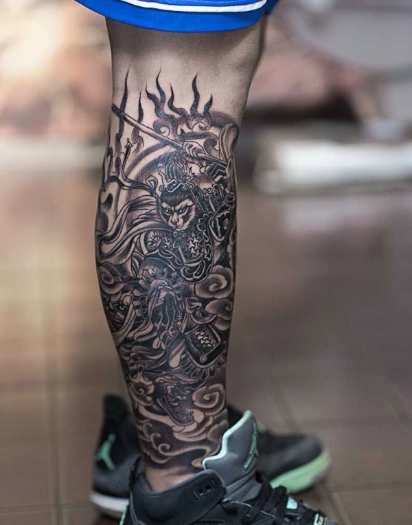 花腿纹身--一组大黑腿纹身图案作品欣赏