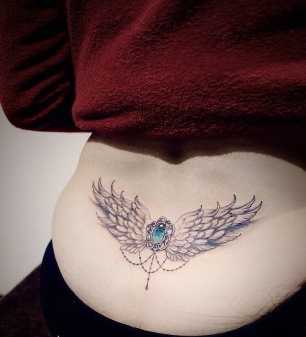 处在腰部的时尚翅膀纹身图片