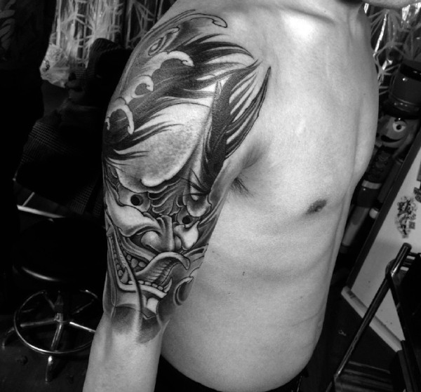 大臂经典帅气的黑白般若纹身图片