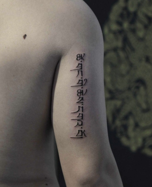 手臂外侧个性小清新梵文纹身图片
